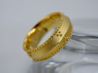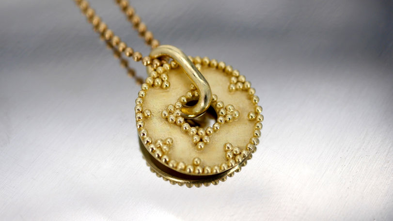 Diese Kollektion ist von der heute fast ausgestorbenen mehr als 5000 Jahre alten Goldschmidetechnik der Granulation inspiriert. Dabei werden kleinste Goldkügelchen einzeln auf einen Untergrund gelegt und mit diesem verschmolzen. Mit meinen Stücken wollte ich die Optik erhalten, sie modern interpretieren und mit den mir zur Verfügung stehenden Mitteln selbst umsetzen. Ich habe großen Spaß daran jedes Stück als Unikat individuell zu gestalten und zu fertigen, auch gern in Kombination mit Steinen oder Perlen.